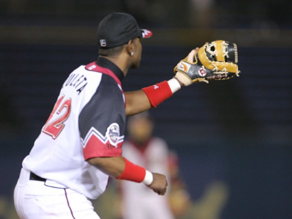 8番 デ ラ ロサ 中飛 初球を打ち上げさせ、センター・大塚が背走しながら半身で捕球! |