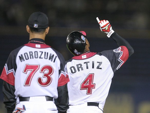 5番 オーティズ 左安 初球を引っ張り、クリーンヒット! |