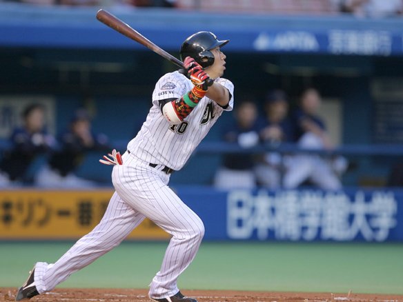 投手 小松 1番 西岡 四球 1-3からのインコース低めの変化球をバットを止めて見極め、先頭出塁! |