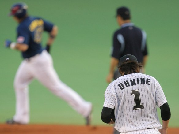 打線も3者凡退のお付き合い。立ち上がりの悪夢からさめ、好投を見せる大嶺を早く援護してあげたいところです! |