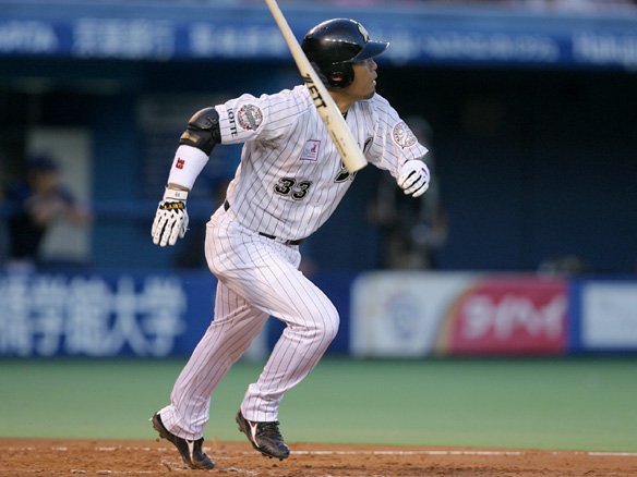 7番 橋本 中飛 2-3からの7球目の投じる前に、1塁牽制。しかし送球が逸れて、ファースト・カブレラが後逸。1塁ランナー・大松は2塁へ進塁!記録はファースト・カブレラのエラー。 |