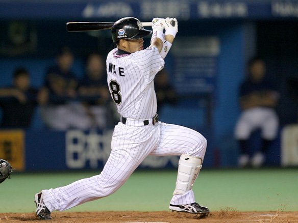 投手 オルティズ 1番 西岡 左飛 2-3まで持ち込んだ8球目、アウトコースよりの緩い変化球でタイミングを外され、打ち上げたところを3塁線付近でレフト・小瀬に抑えられた・・・。 |