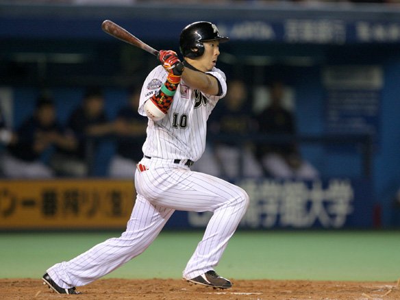 1番 西岡 四球 1-3からの5球目、アウトコースに大きく外れていく球を見送って出塁! |