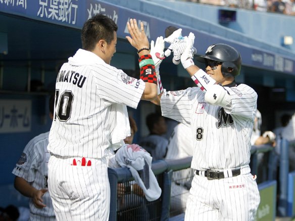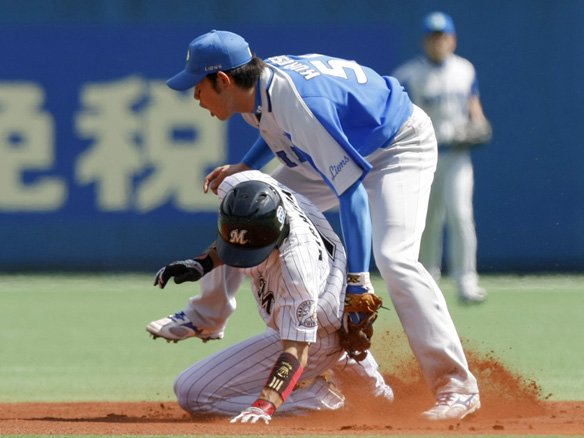 (千葉ロッテ 1塁ランナー・西岡→代走・田中雅) |