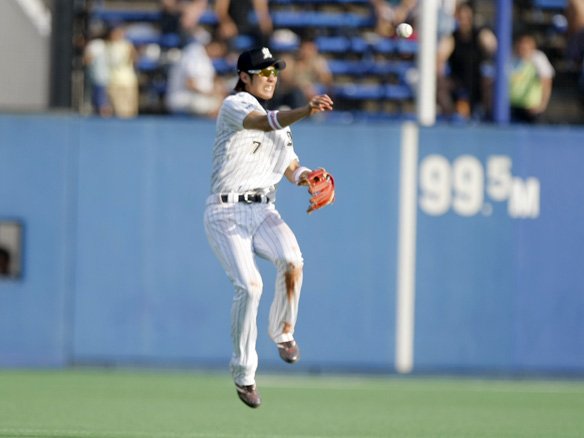 4番 ブラゼル 左飛 初球をバットの先ですくい上げられたが、これはレフト・ベニーの守備範囲!ほとんど動かず、捕球! |
