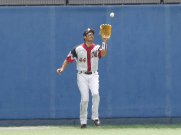 3番 中島 右飛 初球を打ち上げさせ、ライト定位置へのフライ! |
