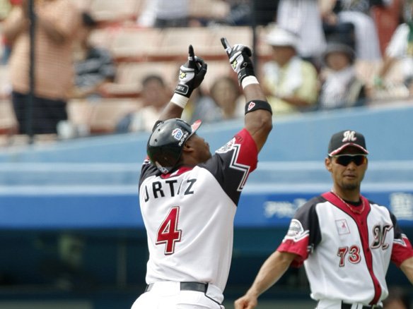9番 オーティズ 右飛 初球を打ち上げてしまい、ライト・G.G.佐藤がほとんど動かず、捕球。 |