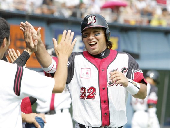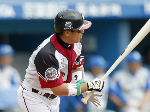 3番 福浦 左安 フルカウントからの7球目、エンドランをかけ1塁ランナー・根元がスタート!福浦、しっかりと応え、アウトコースの球を弾き返した打球は、ショート・中島の頭上を越えた! 福浦、早くも猛打賞! |