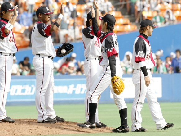 投手 渡辺俊 (千葉ロッテ 代走・竹原→ライト、代走・田中雅→セカンド、セカンド・オーティズ→サード、レフト・大松→大塚) |