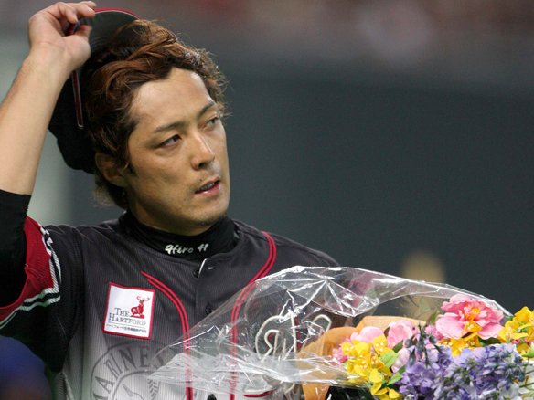 投手 スウィーニー 1番 西岡 死球 1-1からのストレートが右臀部を直撃。 |