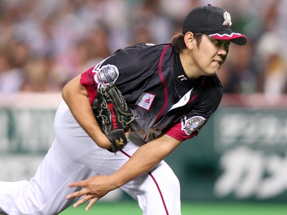 3番 福浦 中安 内角のカーブを振り抜いた当たりは、多少詰まりながらもセンター前へ! 2塁ランナー・西岡、悠々ホームイン。マリーンズ先制に成功!1対0。 ![]() 0