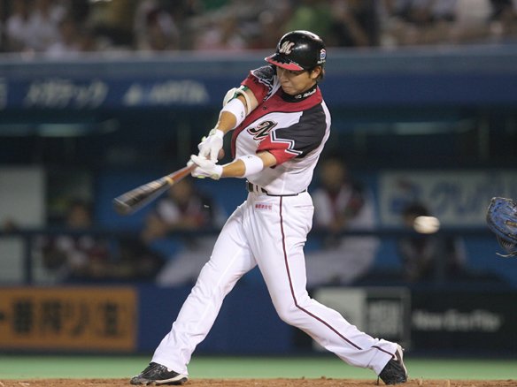 6番 中島 中安 1-0から叩きつけられ、ピッチャー返し。打球はそのまま久保の頭上を越え、ショート・西岡が飛び込んだが及ばず、センター前へ・・・。 中島、猛打賞。 |