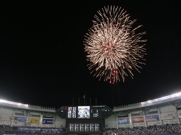 5回終了後、千葉マリン上空に花火が上がる!