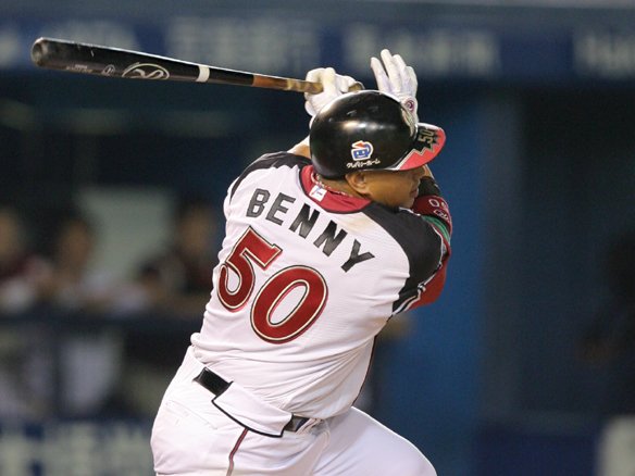 ベニー、低めのボール球に手を出し、空振り三振…