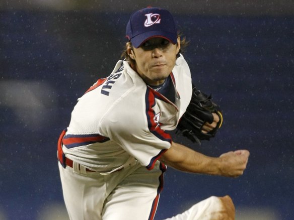 投手 小林宏 雨の影響とグラウンド整備の関係で、開始予定から6分遅れの18:06に試合がスタート。 |