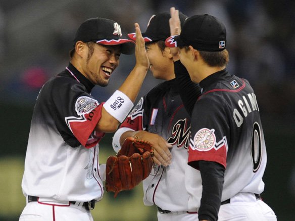 投手 川崎 投手 荻野 (千葉ロッテ 代打・塀内→セカンド、代打・福浦→ファースト、投手・川崎→荻野) |