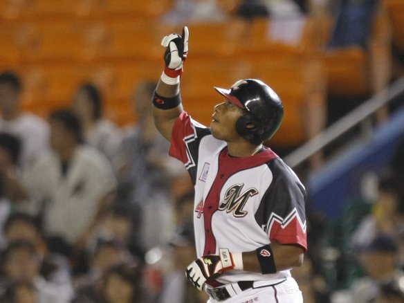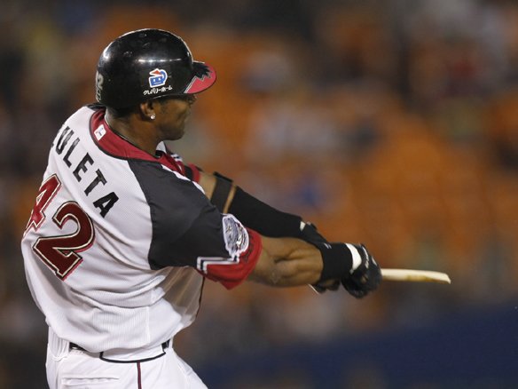 2番 オーティズ 2-2から引っ張った三遊間への打球。ショート・金子誠が駆け込んだが及ばず、これもしぶとくレフト前へ抜けた! 約一ヶ月ぶりに1軍復帰を果たしたオーティズ、早速の復活打! |