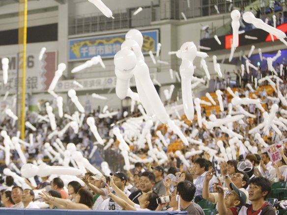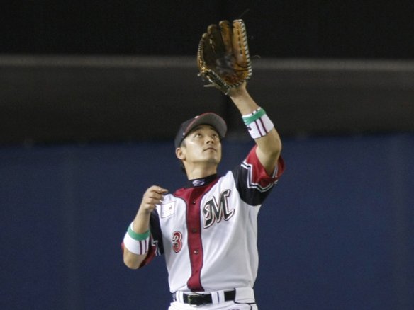 7番 里崎 右飛 フルカウントから押っつけたが打球が伸びすぎ、ライト・稲葉の正面へ・・・。 飛び出していた1塁ランナー・ベニーは慌てて戻ったが間に合わず、ダブルプレー・・・。 |