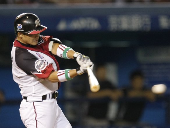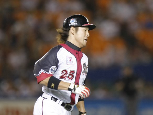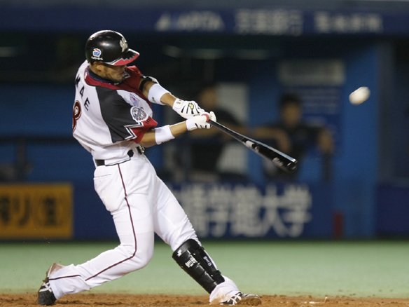 里崎に五輪から帰国後、初ホームランが飛び出し、1点を追加! |