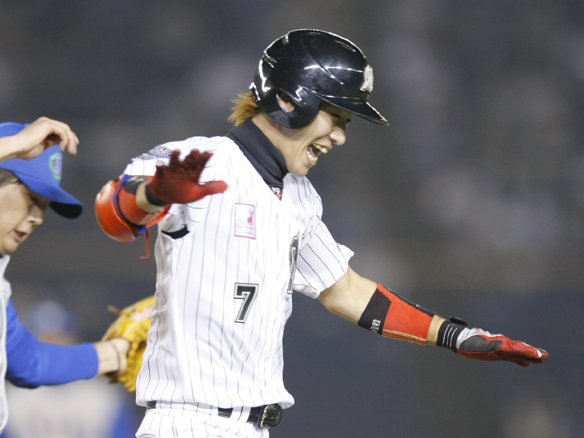 貴重な追加点となるタイムリーヒットを放つ早川