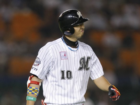 2番 佐藤 打妨 2-1からの4球目、スイングしたバットがキャッチャー・里崎のミットに当たってしまった・・・。 打撃妨害となって里崎にエラーがついた。 |