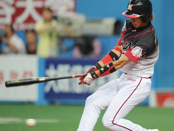 3番 カブレラ 右安 初球、高めの球にバットを止めたが、打球はそのままライト前へ落ちた・・・。 |