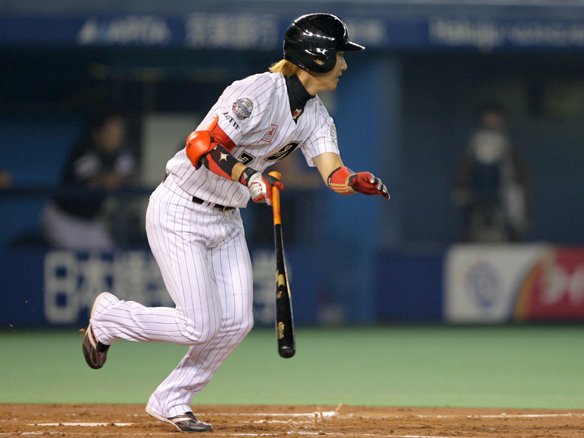 1番 西岡 左翼二 0-1からエンドランを敢行し、インコースのストレートを叩いた打球は3塁線を鋭く破り、レフトフェンスに到達。1塁ランナー・早川は快足を飛ばして一気にホームイン!7対4。 ![]() 8