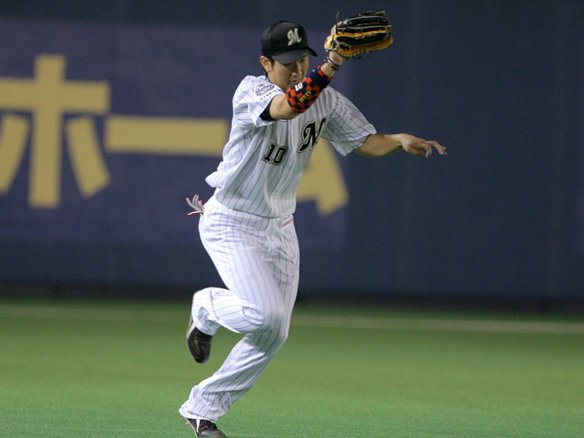 投手 佐藤 3番 ズレータ 左翼二 0-1からの2球目、インコースのスライダーを叩いた打球はスライディングキャッチを試みた、サード・松田のグラブをかすめレフトファールゾーンへ!この間に1塁ランナー・西岡が還り9対6。 ![]() 10