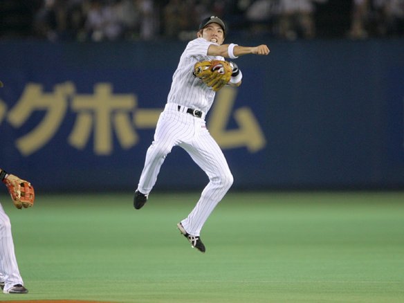 投手 荻野忠 3番 多村 遊ゴ 初球、アウトコースのカットボールを引っかけさせた。 |