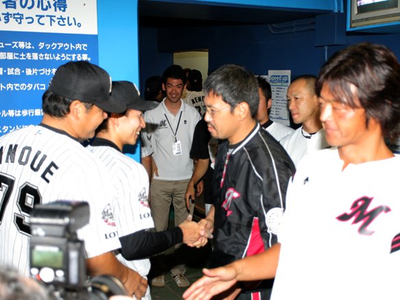この回、エラーや連打、さらに成瀬のアクシデントもあり2点を失いましたが、西岡の好守や小宮山の好リリーフで、何とか同点で抑えたマリーンズ。打線がすぐに勝ち越し点を奪ってくれるはず!! |