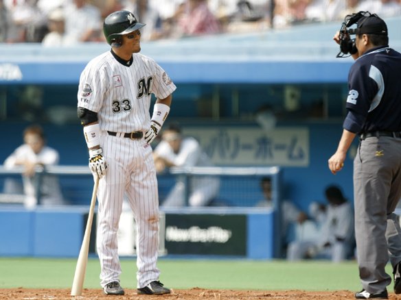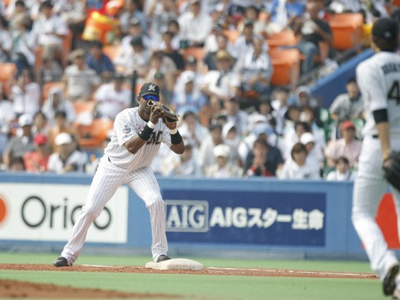 投手 和田 5番 サブロー 三ゴ 1-0からの2球目、アウトコースの球を引っ張ったが、サード・松田の正面へ・・・。 |