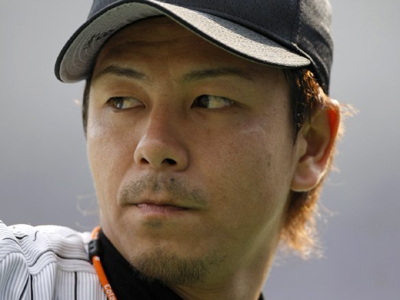 2番 オーティズ 中飛 1-1からの3球目、アウトコース高めのストレートを左中間に高く打ち上げてしまい、センター・多村に前進してキャッチされた・・・。 2塁ランナー・西岡は動けず。 |
