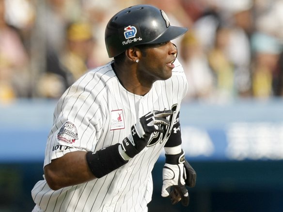 4番 ズレータ 中越三 0-1からの2球目、アウトコース高めの球を振り抜いた大きな打球は、センター・荒金の頭上を越えてフェンスに直撃!!クッションボールが転々とする間に、1塁ランナー・オーティズがホームイン!!7対5。 打ったズレータは一気に3塁に到達!! ![]() 7