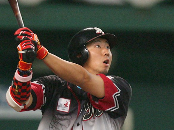 6番 サブロー 中飛 2-2からアウトコース低めのスライダーにバットを合わせたがセンター・赤田の守備範囲。 |