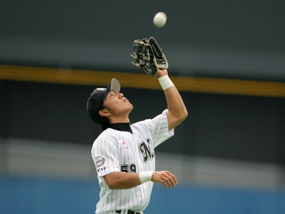 投手 清水直 投手 清水 4番 松中 右飛 1-0から詰まらせながらも振り抜かれた大きな打球。ライト・ベニーが下がり、フェンス手前、ウォーニングゾーンで正面を向いて捕球! |