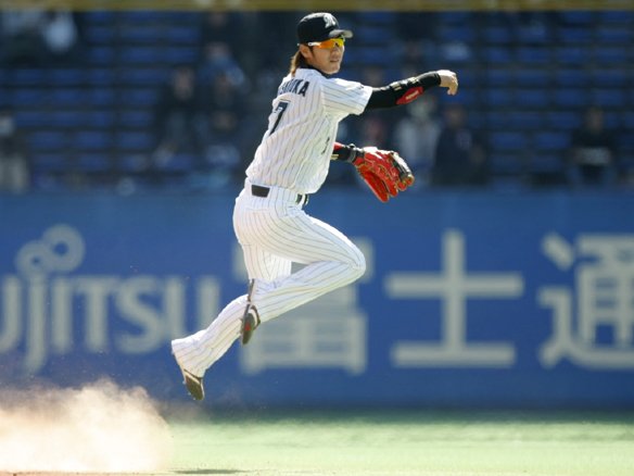 2番 早坂 一ゴ 2-1から引っ張ったが、打球はファースト・森本の正面・・・。3-6と渡り1塁ランナーのバーナムJr.はフォースアウト。しかしダブルプレーを狙ったショート・金子の1塁送球が乱れ、ボールが1塁側ファールゾーンを転々とする間に、早坂は快足を飛ばして一気に2塁へ! 記録は内野ゴロとショート・金子のエラー。 |
