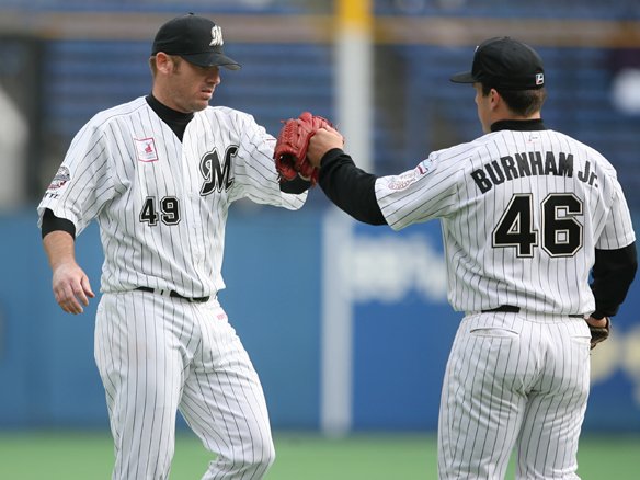投手 中郷 【千葉ロッテ選手交代】 代打・バーナムJr.→ファースト ファースト・福浦→レフト・神戸 レフト・大松→セカンド・渡辺正 ショート・西岡→塀内 |