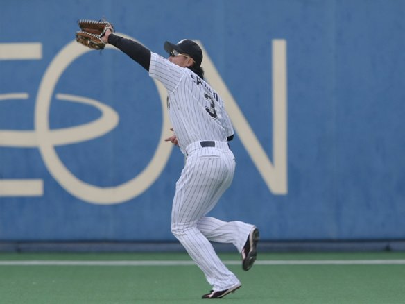 右中間深くの当たりに追い付く好捕を見せたサブロー