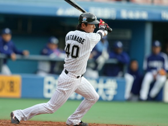 初球、高めの球をセンター前に運び出塁した渡辺正