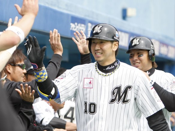 6番 大松 右犠飛 初球をとらえ、ライナー性の打球がライトへ!ライト・G.G.佐藤が捕球し、バックホーム。しかしタッチアップから3塁ランナー・早坂がサヨナラのホームイン!!!6対5。 マリーンズ、劇的サヨナラ勝ち! ![]() 6
