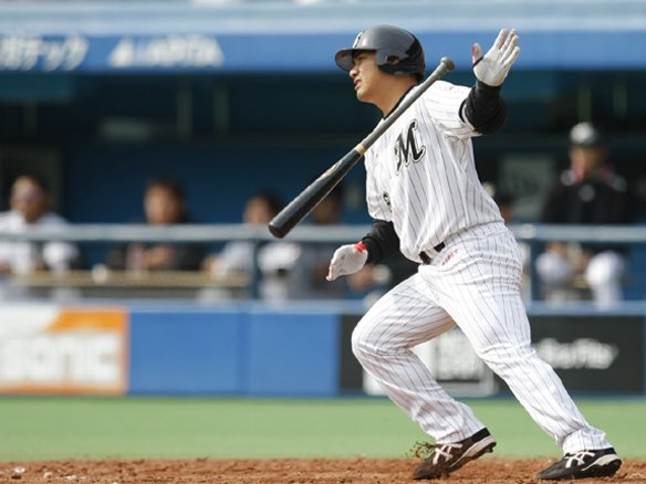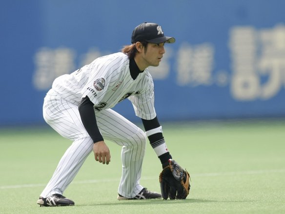 2番 栗山 一ゴ 1-1から1塁線ギリギリの打球を、ファースト・福浦がバックハンドで押さえ、落ち着いて1塁ベースカバーの小野へトス!その間にランナーそれぞれ進塁。  |