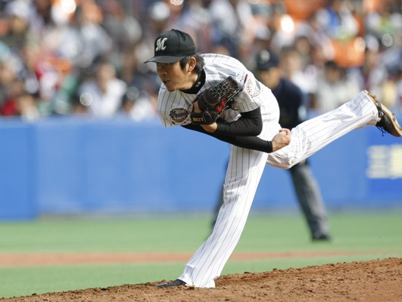 投手 許 2死1,2塁と追加点のチャンスで先制打の里崎にヒットが出ましたが、相手の好返球に阻まれ惜しくも無得点。 しかし、押しているのはマリーンズ!  |