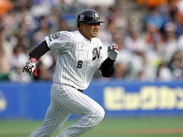 6番 G.G.佐藤 右中二 甘く入った球をとらえられ、右中間を深々と破られた・・・。1塁ランナー・中島同点のホームイン・・・。5対5。 ![]() 5