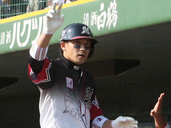6番 サブロー 左中本 高めに浮いたストレートを完璧にとらえた打球は、左中間スタンドへ飛び込んだ!サブローの2試合連続となる3号ソロで、マリーンズ同点!1対1。 ![]() 1