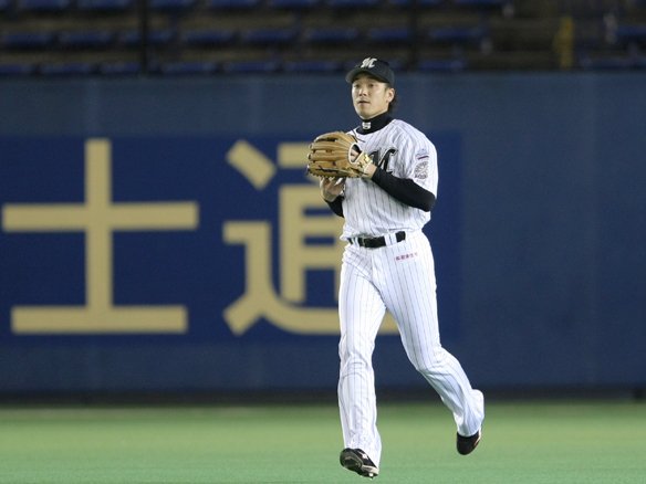 1番・大村の打球を捕球する、センター・サブロー