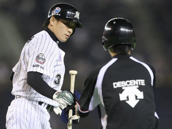 【千葉ロッテ選手交代】 1塁ランナー・福浦→代走・早坂  |