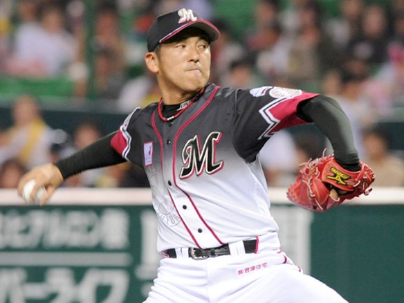 ヒットで出塁の長谷川に二盗を試みられましたが、ショート・西岡の好カバーもあり、この試合初めて無失点に抑えました!  |