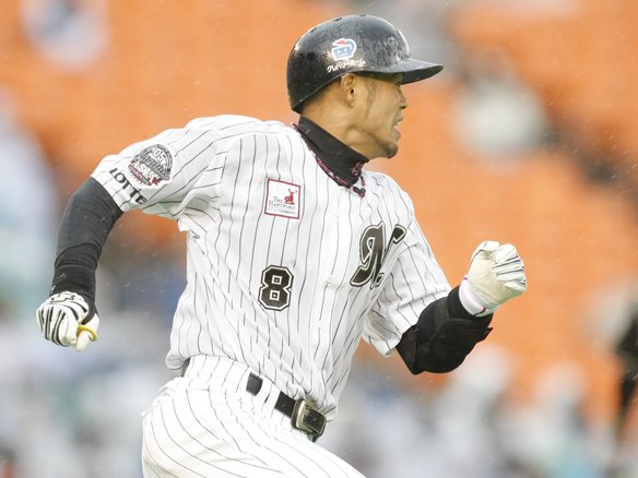 3番 西岡 三ゴ 高めのストレートを引っ張りボテボテの打球は、サード前へ。5-4-3のダブルプレーを狙われるも、1塁はセーフ。 |
