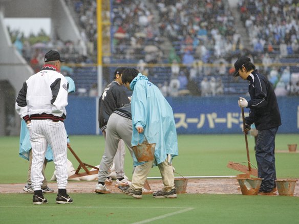 雨脚が強くなり試合は一時中断、結局降雨コールドとなる