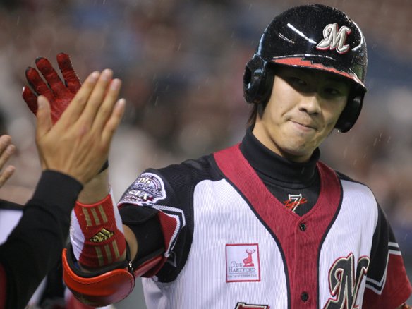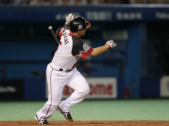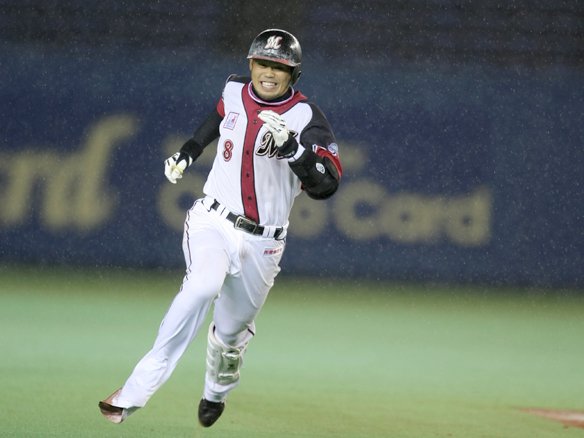 2死から四球で出塁した3番・西岡がすかさず盗塁しチャンスを作ると、4番・井口がタイムリー2ベースヒットで応え、ワンヒットで再逆転に成功しました!  |